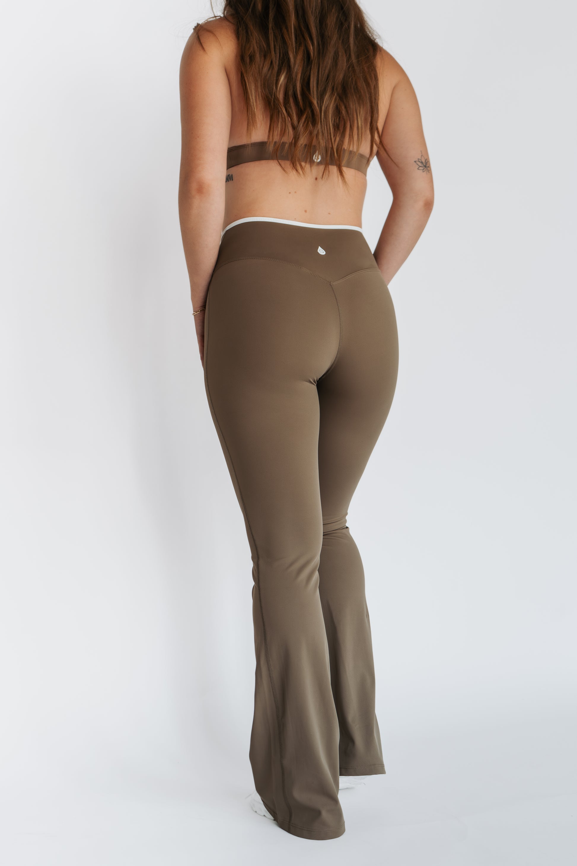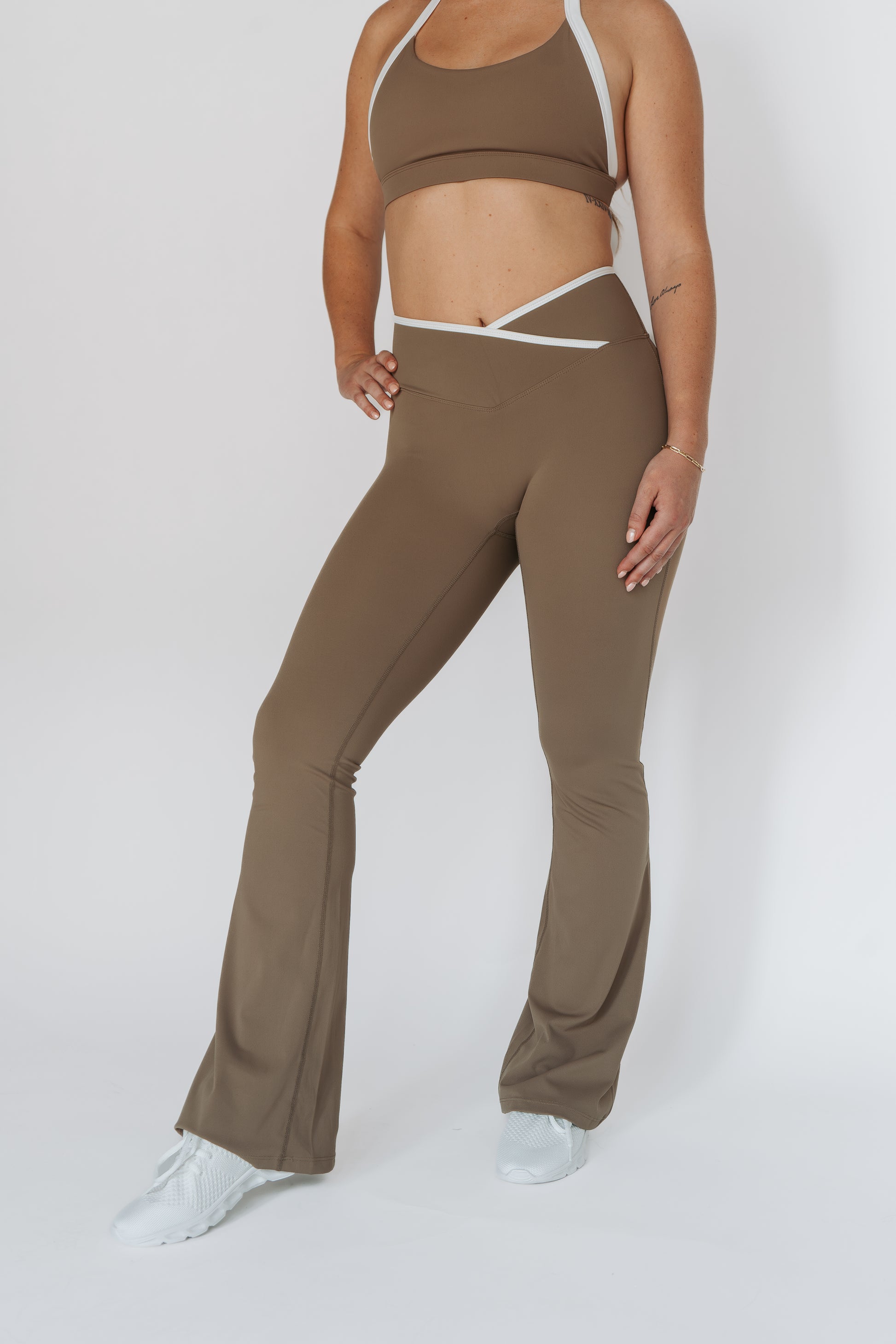 Our Castle Flare Pant is designed to sculpt, lengthen, and move with you. Crafted from soft, breathable fabric that feels like a second skin, it’s finished with contrast white piping. A cross-front waistband smooths, while the flared leg flatters and elongates and a subtle shaping seam enhances natural curves, giving lift and contour. This flare has it all. In our light Sand tone, it carries a sea-to-shore vibe with a subtle mermaid-inspired edge—supportive movement, elevated style. Style with the Castle Bra for a powerful and sleek set.