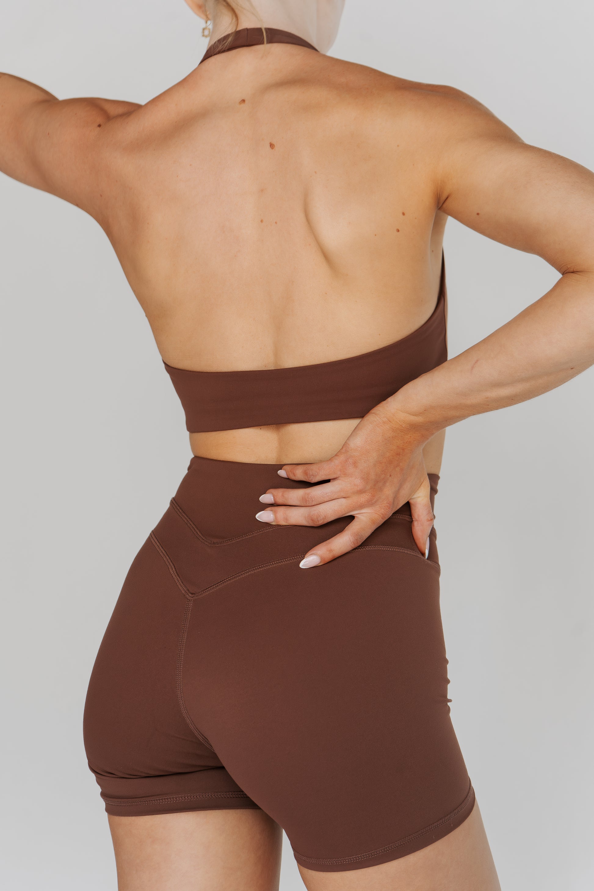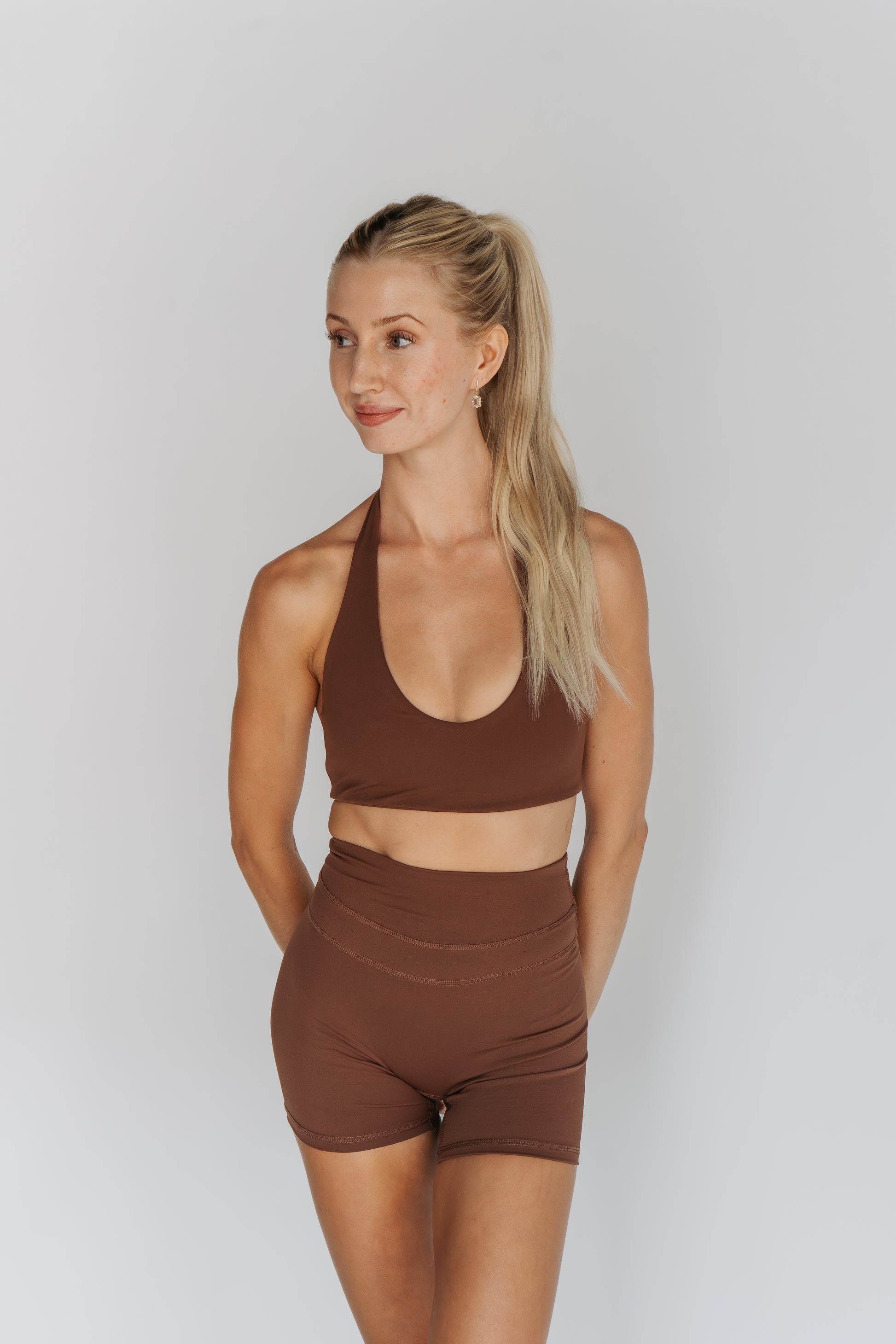 Smooth and sculpted with near-seamless construction, this halter bra feels like a second skin. A soft scoop neckline flatters, while a thicker back band delivers grounded support. Minimalist by nature, it’s made to move with you—everyday, everywhere.
